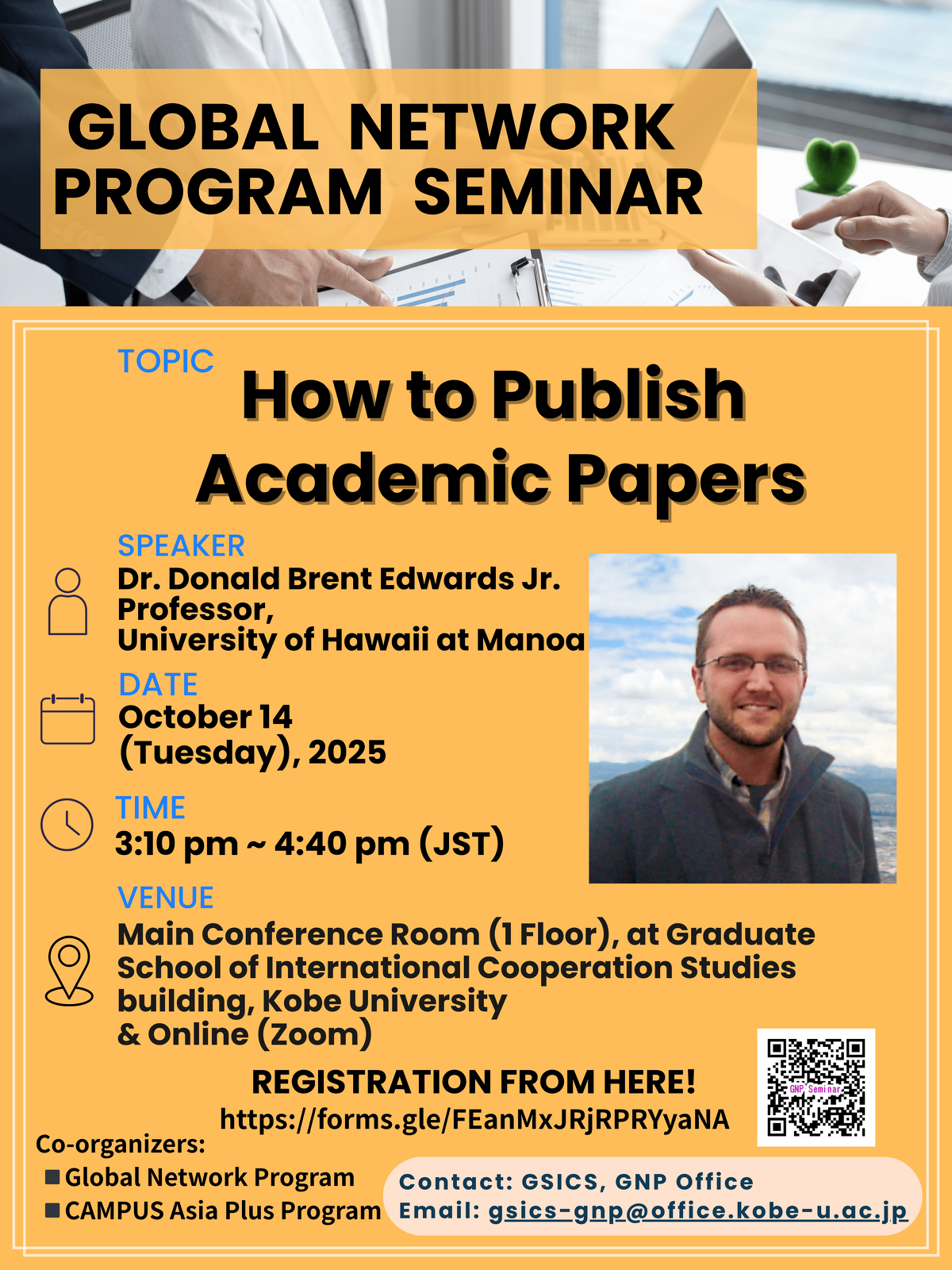 神戸大学グローバルネットワークプログラムセミナーを開催いたします。 お申し込みはこちら、もしくはポスターのQRコードから。