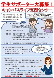 神戸大学キャンパスライフ支援センターでは、学生サポーターを募集しています。