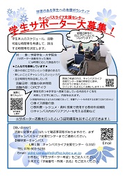 | 対象 | 学部学生・大学院生 (サポーター活動を行った場合には時間に応じた謝金があります) |