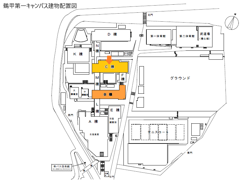 神戸大学 物理学教育部会について¶ アクセス¶ 神戸大学鶴甲第1キャンパス C棟内 〒657-8501 神戸市灘区鶴甲1-2-1 鶴甲第1キャンパス 建物配置図 連絡先¶ メールアドレス iphe-phys(at)edu.kobe-u.ac.jp(atを@に変換)