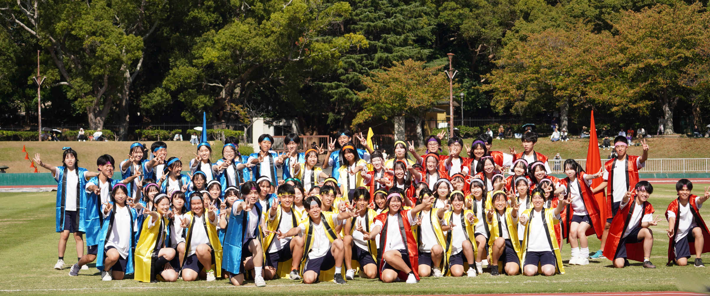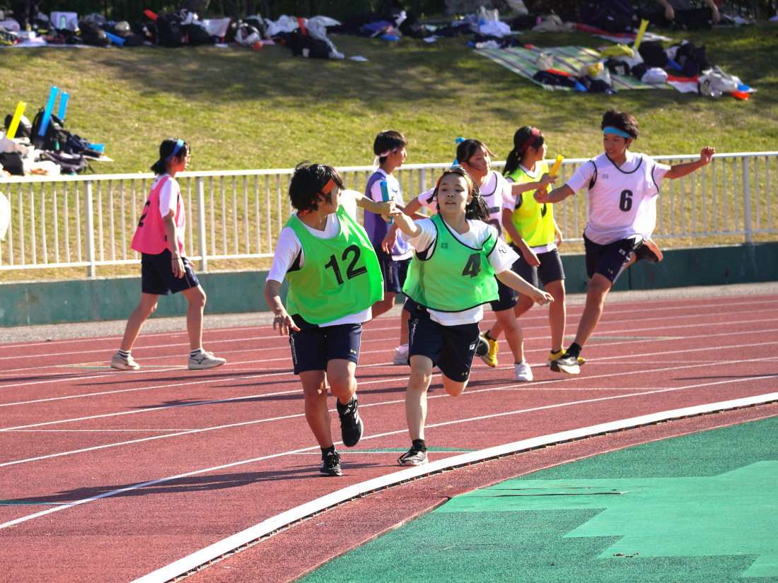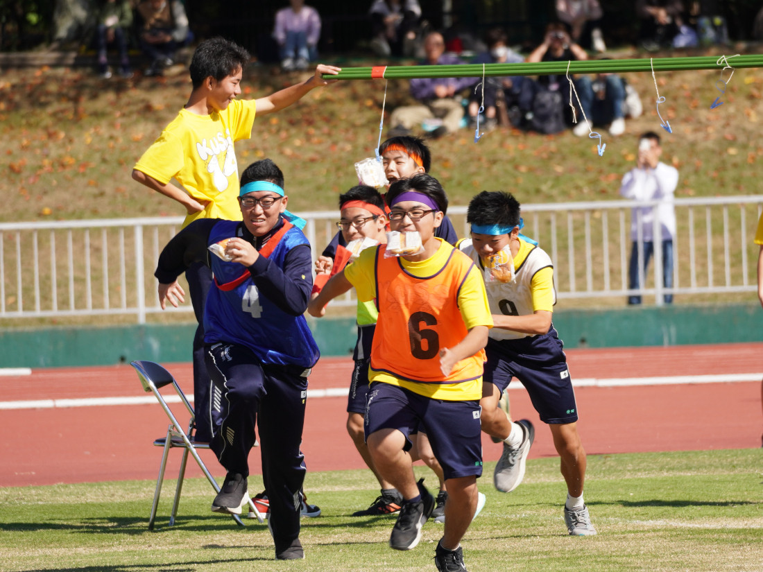 本校の体育祭は近年陸上競技場を借りて開催しており、広い場所で存分に体を動かすことができる行事です。例年、玉入れや借人競走などの各クラスの代表者が出場する競技、部対抗リレー、全員参加の大玉が行われ、有志による応援団のパフォーマンスも体育祭を盛り上げています。競技に参加するだけではなく、運営、観戦、応援、各自の得意なことに全力になれることも体育祭の魅力だと思います。第12回体育祭では、縦割りの組対抗での得点発表と前後期別のMVPクラスの表彰を行い、優勝を目指した熱い戦いが繰り広げられました。 実施体制の考案、競技の決定、会計、準備や当日の運営、片付けなどを生徒が主体となって行うため、全校生徒に本気で向き合い、協力して行事を創り上げるという、人生の糧となる貴重な経験をすることができました。体育祭は前後期合同開催になってから年月が浅く、まだまだ発展途中の行事です。これからさらに進化する体育祭に期待しています!