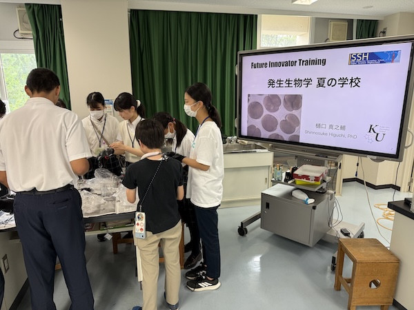 6月14日(土)、Future Innovator Trainingの取り組みの一環として、「生物学オリンピック講座」を行いました。本校生1〜6年生の14名に加えて、校外から生徒20名と引率の先生6名を迎えて、分子生物学にまつわる実習に取り組みました。本校教員の樋口と、本校卒業生でいまは神戸大学農学部で学んでいる石川遥千さん、櫻田涼太さんがティーチング・アシスタント(TA)として指導を担当しました。
