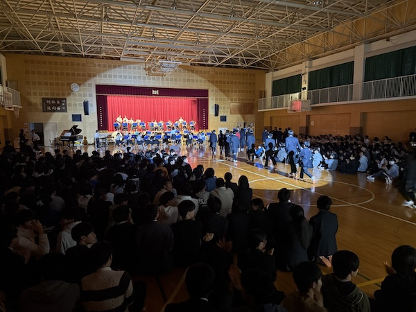 2月19日(木)、生徒会執行部の企画・運営による「六年生を送る会」が開かれました。今回は第1アリーナに全校生が集い、在校生が12回生を送り出すとともに、卒業する12回生は本校での思い出を振り返りました。