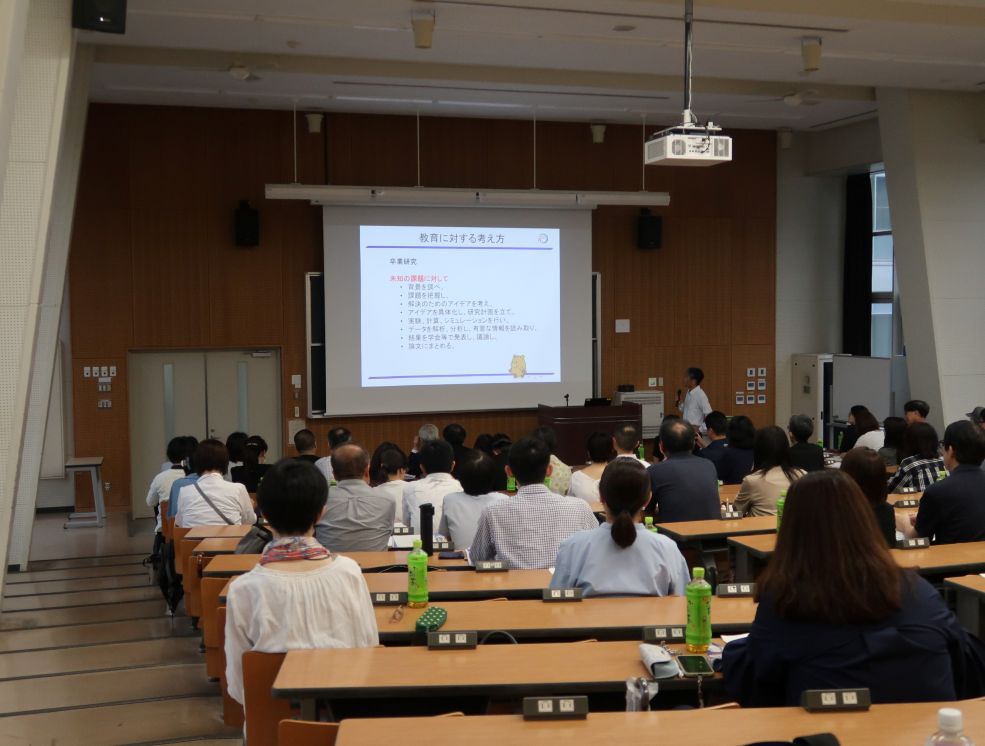 まず、工学部出席者を紹介した後、藤井工学部長から挨拶があり、工学部の現状や、教育理念、進学状況等について説明がありました。
