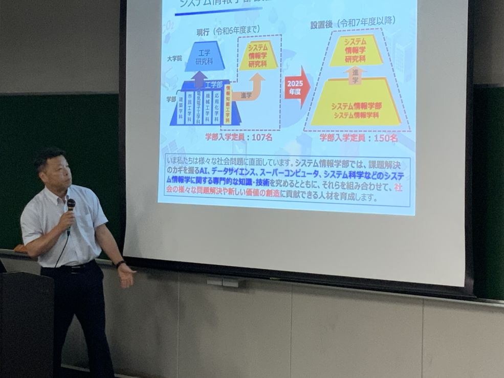 臼井システム情報学部長よりシステム情報学部の概要について説明を行いました。
