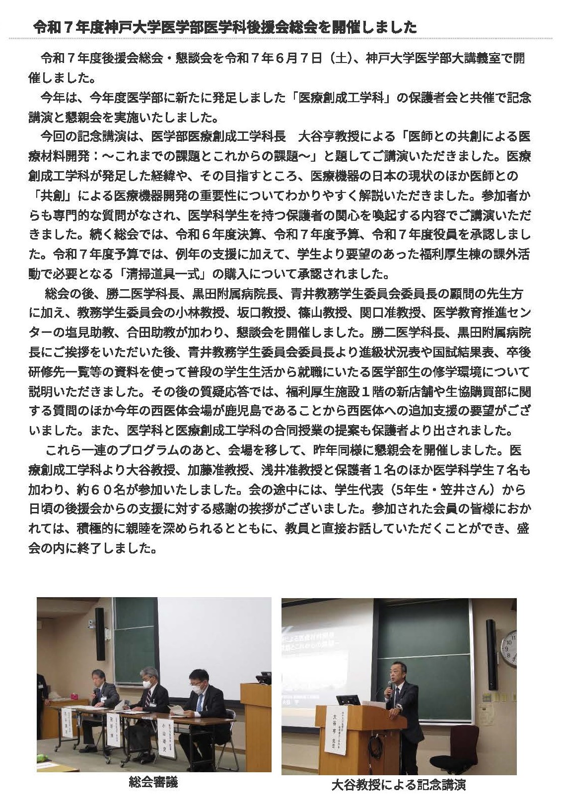 令和7年度後援会総会(医学部医学科)